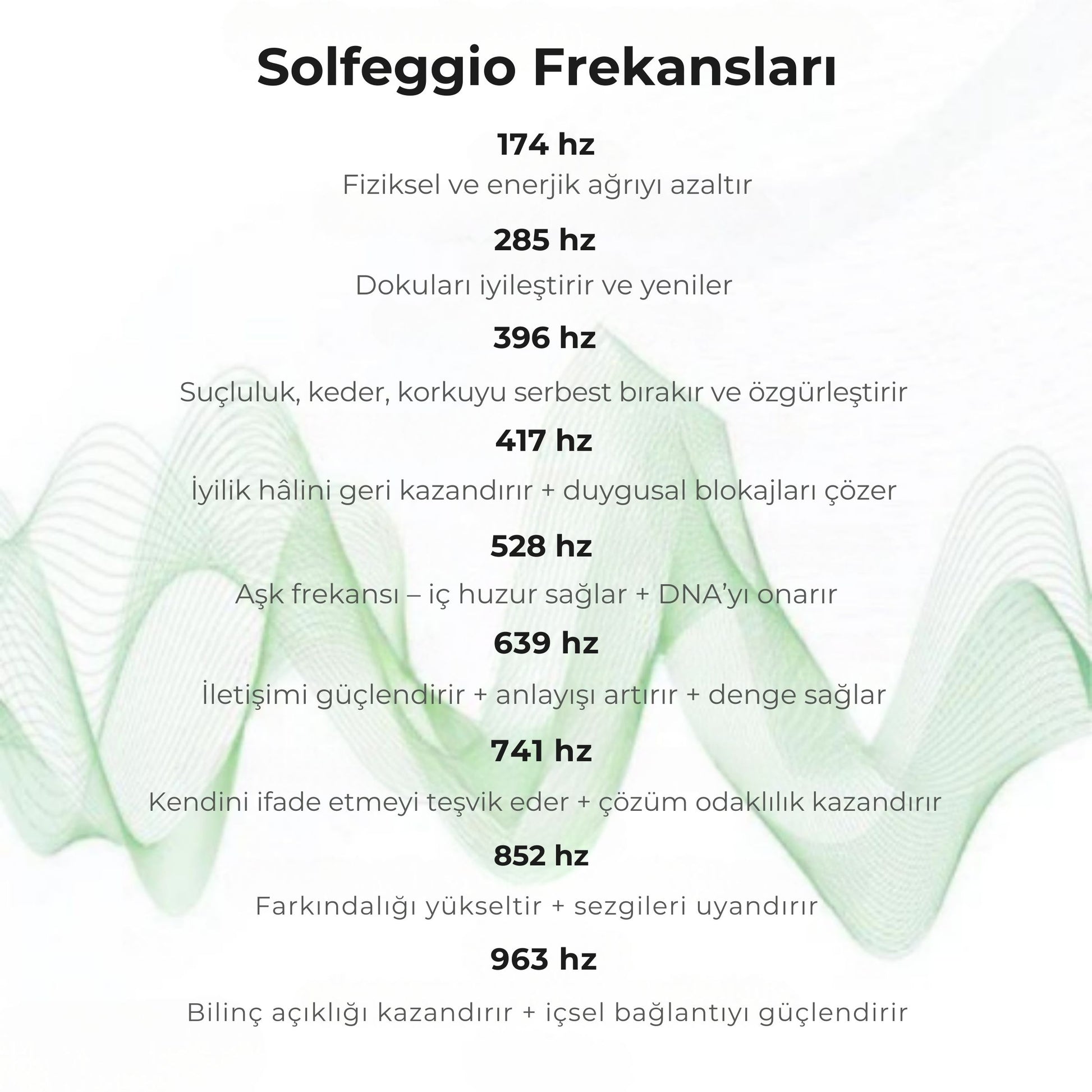 Her frekans, iyilik hâlinin farklı bir yönünü hedefler: duygusal arınmadan DNA onarımına, sezgilerin güçlenmesinden iç huzura kadar.